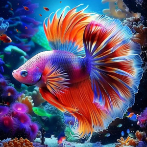 DIY Abstract Diamond Painting - AB Round/Square or Fairy Dust Round/Square Diamonds, Neon Goldfish