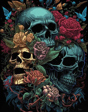 DIY Abstract Diamond Painting - Full Round/Square 5D Diamonds, Three Skulls and Roses