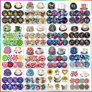 Enjoy a variety of stunning designs with our Mixed Design Diamond Art Coasters! From whimsical starry mushrooms to elegant floral patterns, esoteric moons, butterflies, and even Christmas characters, this set has something for every occasion. Perfect for DIY enthusiasts, these sparkling rhinestone coasters are heat-resistant and make for unique decor or thoughtful gifts.