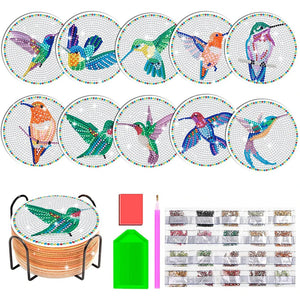 - DIY Animal Diamond Art Coasters, 10 Piece Set With Holder, Variety Hummingbird Designs