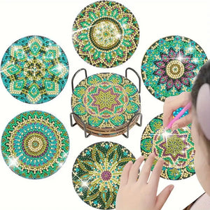 - DIY Mandala Diamond Painting Coasters, 6 Piece Set With Holder