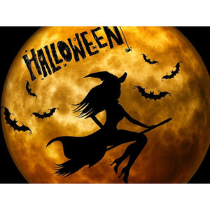 Halloween Diamond Painting Kit | Witch On Broom Rhinestone Painting | Scary Spooky Bats | Full Round/Square 5D Diamonds