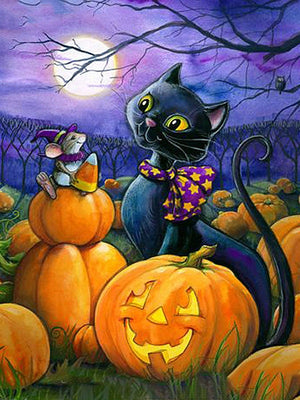 The Black Cat And Pumpkins Are Staple Elements Of Halloween - Throw In A Rising Full Moon And You Have One Great Halloween Diamond Painting Here - Full Round Or Square Drill Diamonds On Full Pasting Area - Pick Your Desired Canvas Size And Add This Holiday Rhinestone Kit To Your DIY Diamond Painting Collection Today