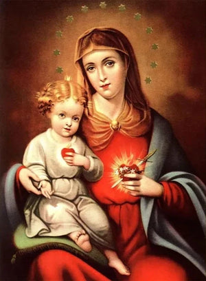 Celebrate The Sacred Bond Between The Virgin Mary And Baby Jesus With This Stunning Religious Diamond Painting Kit. Mary And The Holy Child Hold Hearts Symbolizing The Passion Of The Christ - Designed To Inspire Peace And Serenity, This Beautiful Artwork Combines Faith And Art In A Meditative DIY Project. Choose Full Round Or Full Square 5D Diamonds For A Sparkling Finish, Available In Various Canvas Sizes. Each Kit Includes Everything You Need For A Relaxing, Creative Experience. Perfect For Expressing Spirituality Through Art Or As A Thoughtful Gift.