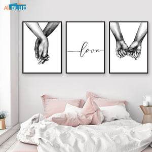 Nordic Poster, Black And White Holding Hands Canvas Prints with Love Quote.