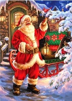 Santa Comes Out Of His North Pole Home To Greet A Beautiful Cardinal - Sleigh Packed With Presents Behind Him - Christmas Diamond Painting Kit - DIY Holiday Cross Stitch - 5D Full Round/Square Drill Rhinestone Embroidery Set On Full Pasting Area - Painting Canvases Available In Several Sizes - Also Remember To See The Other Christmas Diamond Paintings Available In Our Store - Start Or Add To Your Own Christmas Diamond Painting Collection Today!