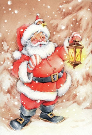 Santa With Lantern | Christmas Diamond Painting | Full Round/Square Drill 5D Rhinestones | DIY Holiday Kit