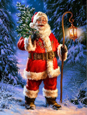 - Santa With Spruce And Lantern | Christmas Diamond Painting | Full Round/Square Drill 5D Rhinestones | DIY Holiday Kit