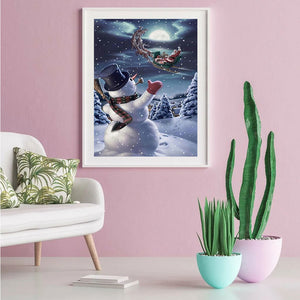 Snowman Waving At Santa Claus Diamond Painting Multiple Canvas Sizes